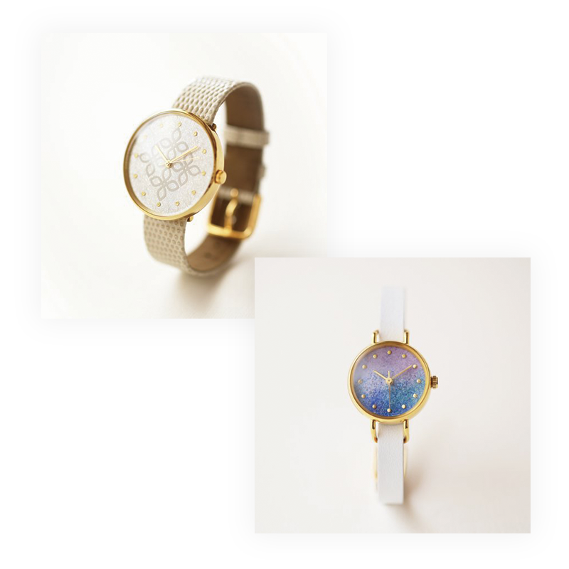 うるしシリーズに蒔絵で12個所点を付けたタイプの腕時計発売 (はなもっこ)